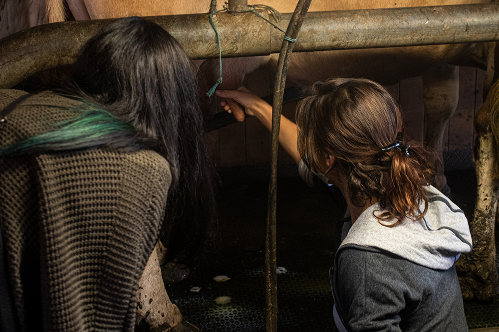 En immersion totale, ils ont participé à la traite du soir sous l’oeil bienveillant de Pierre, Pauline et des vaches. Marjolaine, fromagère aux côtés d’Alexandre, a fait visiter la fromagerie et les caves d’affinage.
