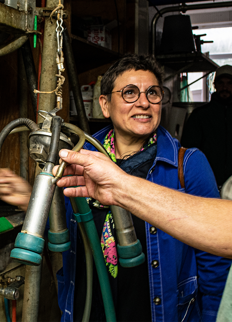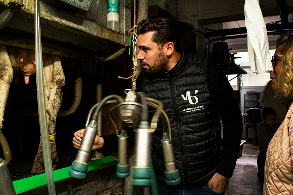 En immersion totale, ils ont participé à la traite du soir sous l’oeil bienveillant de Bruno, président du Comité pour le Saint-Marcellin IGP.